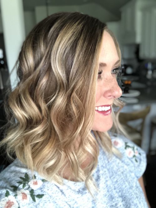 I prefer not to use a blowdryer (mainly out of laziness, lol) so I wash my hair at night and let it air dry. When I sleep, I try to pull my hair up as if it’s in a high ponytail as opposed to sleeping on it. In the morning, I use a ceramic flat iron just on the top front and ends to smooth it out. I then us a Hot Tools 1” curling iron, curling it into layers from bottom to top of my head (in 3 sections). Be sure to leave about 1″ of hair out of the curling iron at the end in order to create a more beachy wave. Once I’m at the top section, I curl the first strands away from my face and the second strand towards my face. This will eliminate the curls forming together and creates more dimension. Allow the curls to cool for at least 5 minutes before touching or styling. Once cooled, I use a mix of my fingers and a large-tooth comb to separate. Even just flipping your head to shake the curls works well. I then finish it off with Sebastian Sharper Plus hairspray.
