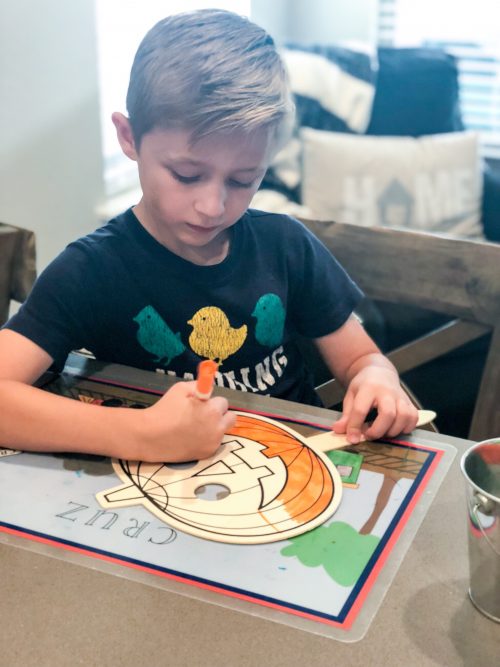 I found these super cute wood halloween masks in Bullseye’s Playground at Target for only a dollar. You can also find fun super hero masks on Amazon for a great price. Everyone had their own coloring station with markers and they had a blast! Something so simple turned the afternoon into a fun and memorable one!