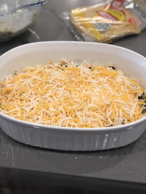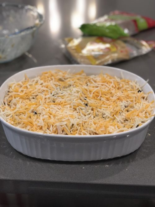 Sprinkle cheese over the Chicken mix for your third layer and repeat these steps for layers 4, 5 and 6.