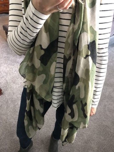 The camo trend is in full affect! If you’re like me and don’t want to go crazy with the print then this scarf is perfect for you. It’s lightweight, nice mix of neutrals and it’s under $9! It’s an easy way to wear a trend and not over do it.