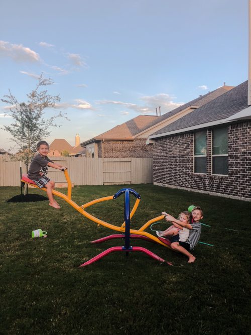 Backyard play…seesaw, seesaw! This is by far my favorite item. It doesn’t take up lots of space and the kids have a blast on it! Plus they can double up on a seat and everyone gets a ride ?.